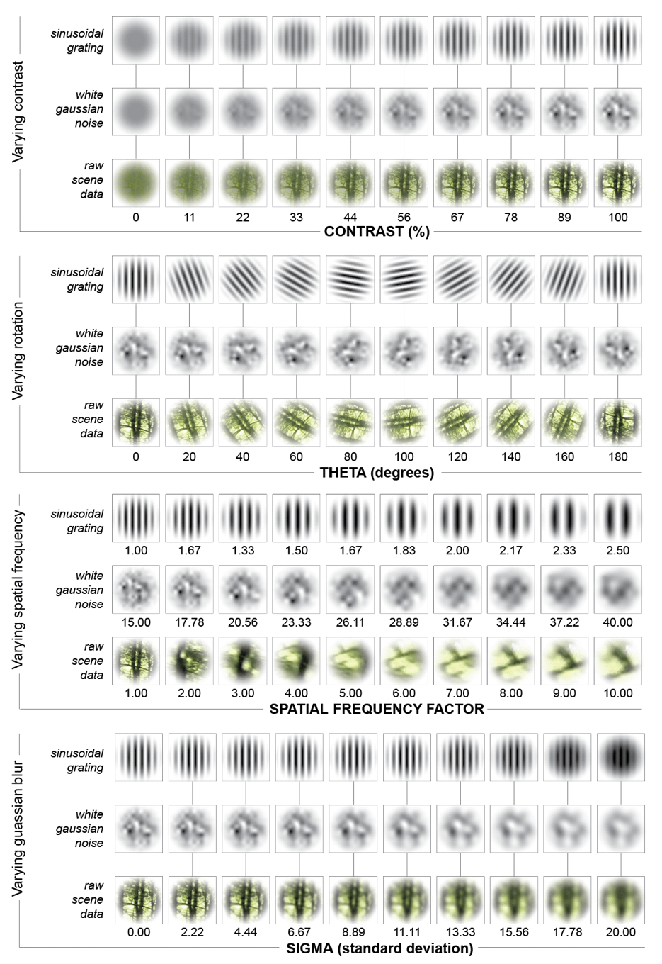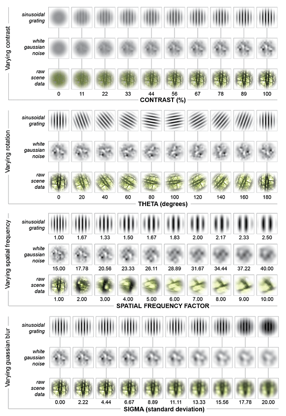 - Scene parameters of hue, saturation, value, spatial frequency, and optical flow are calculated within ROIs