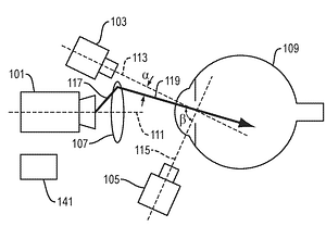 ABSTRACT: A projector and one or more optical components project a light pattern that scans at least a portion of an anterior segment of an