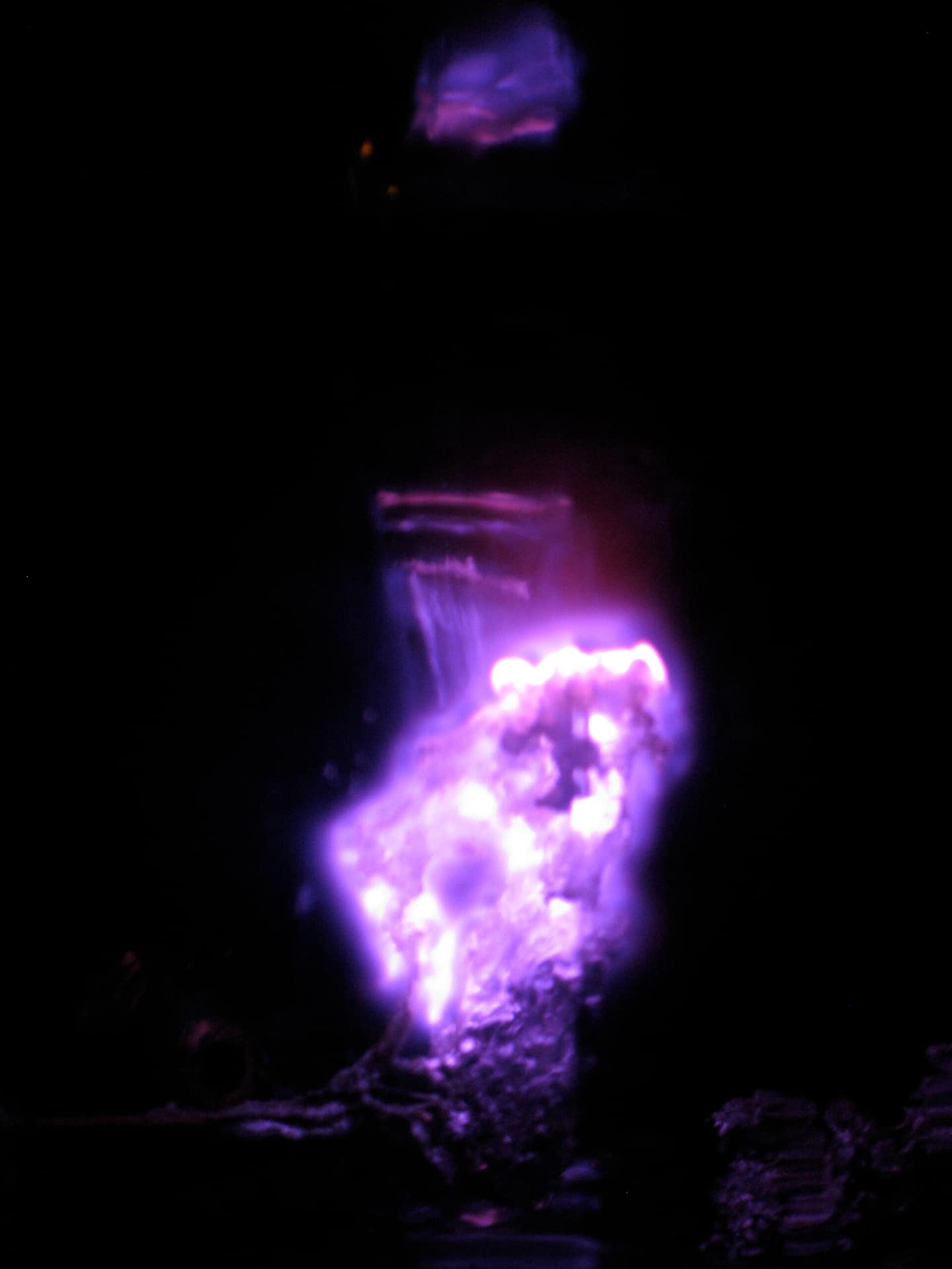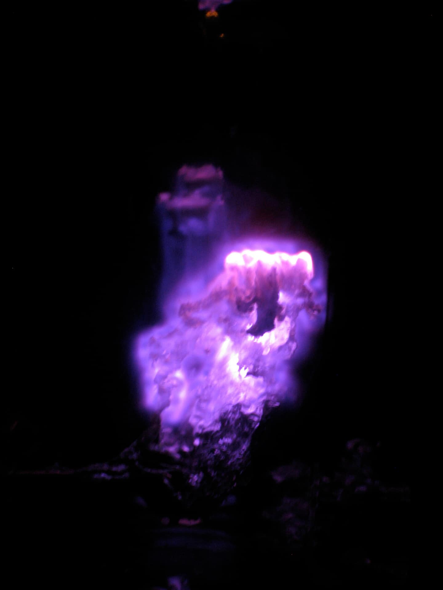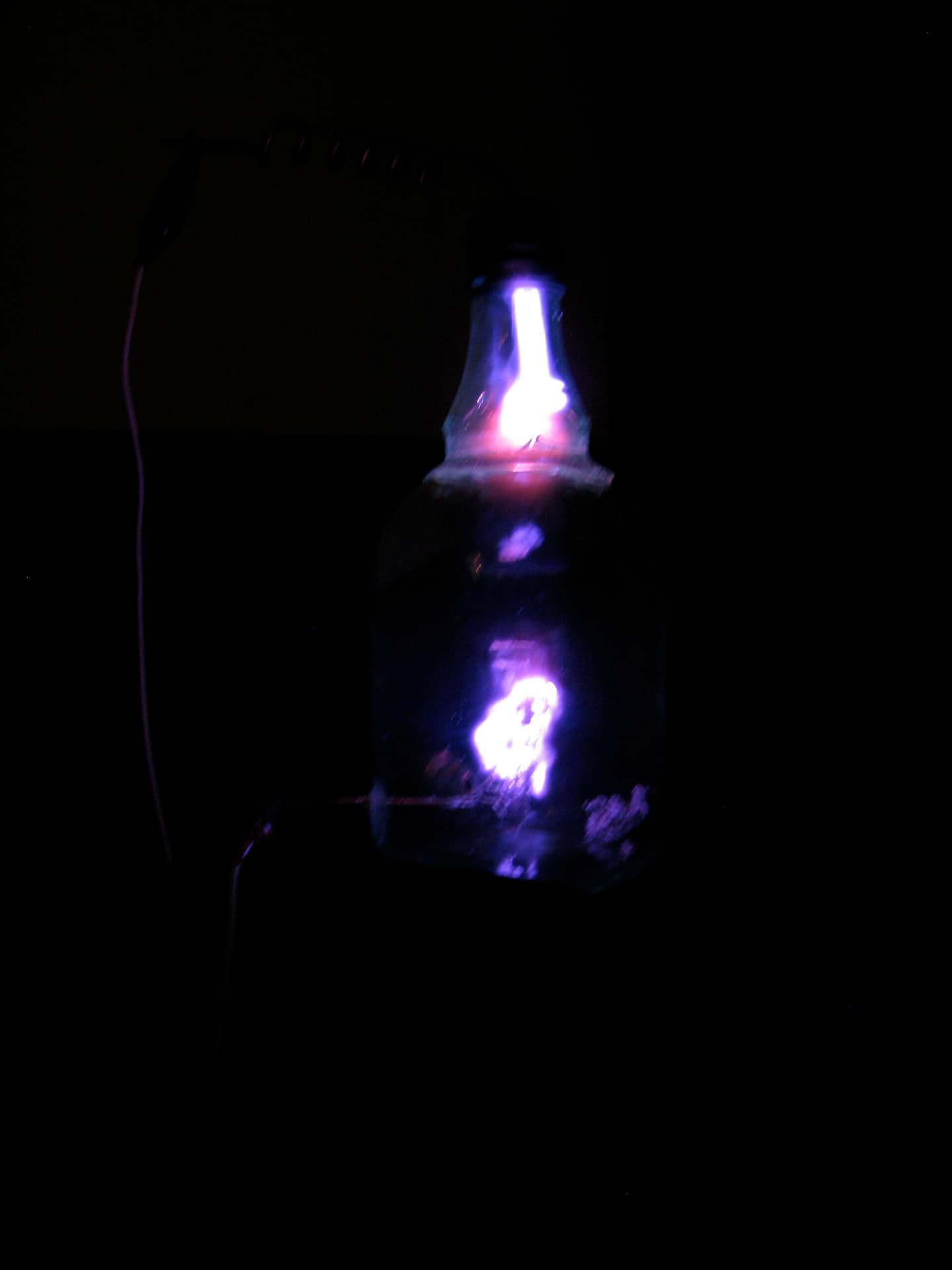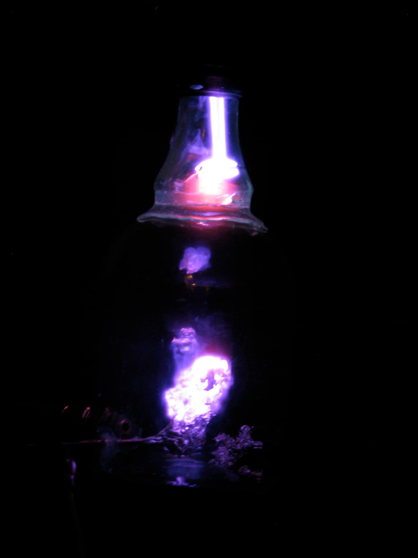 The next step in this project has been to expand the work on a larger scale. I engineered and built a 12 cubic foot vacuum particle accelerator with a power grid running at 300,000 V made from discarded television components, and a 10,000-watt stepped-up magnetron series. It is a photographic platform with which I have the freedom and flexibility to address a variety of natural mediums at the molecular level, probing the aesthetics of harmonics with the freedom to synthesize orchestration, and organic designs into new and larger contexts.