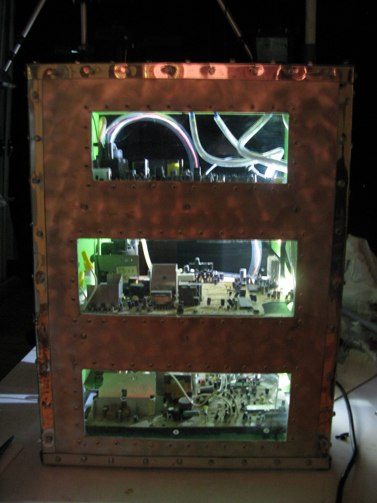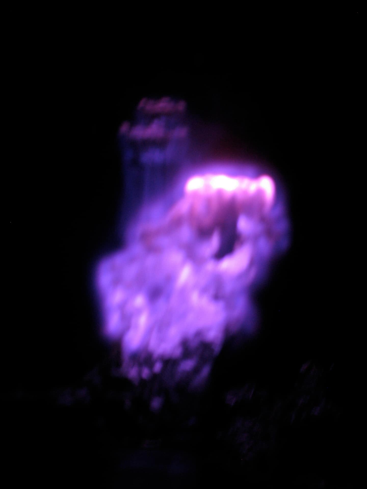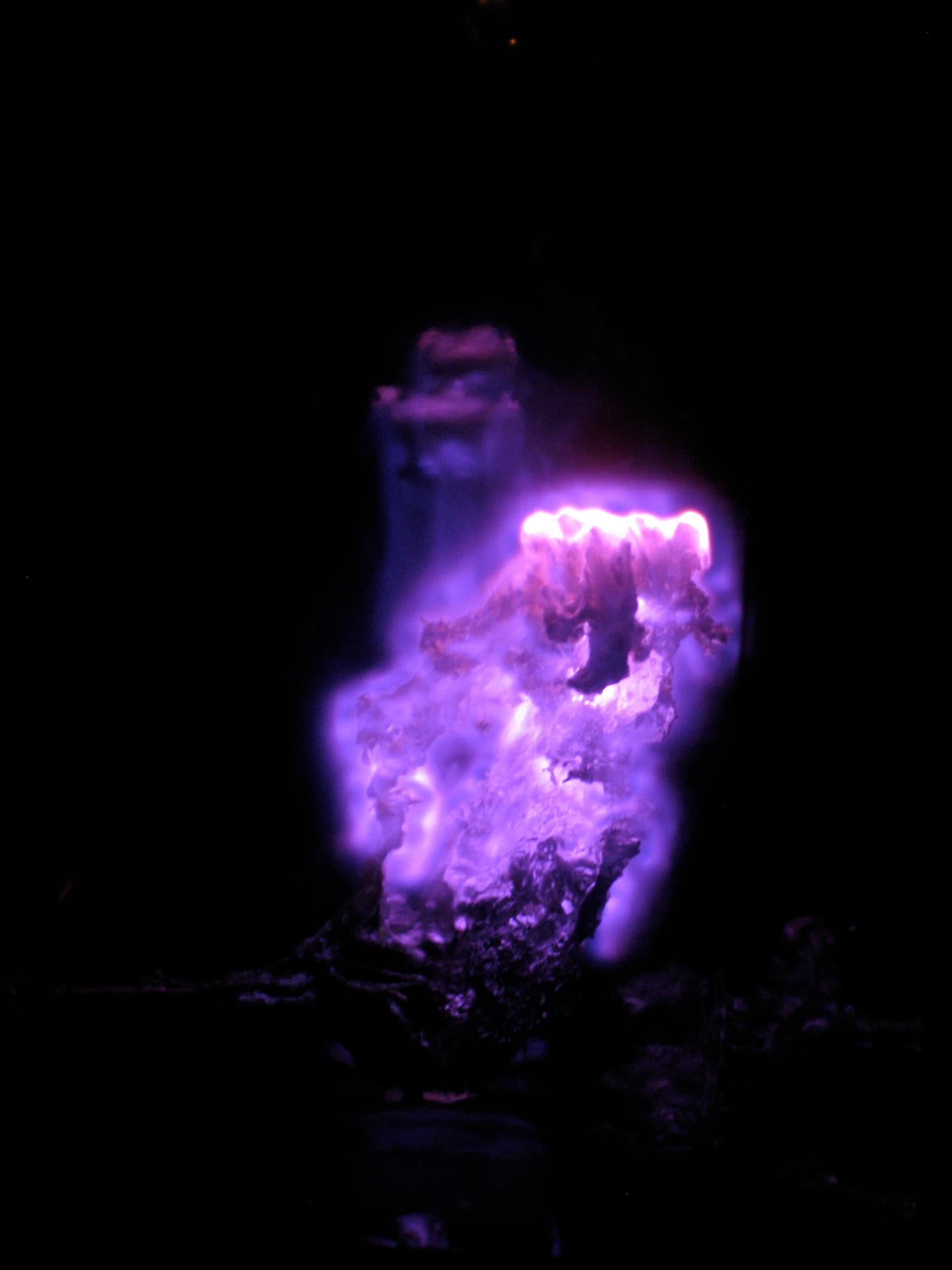 The next step in this project has been to expand the work on a larger scale. I engineered and built a 12 cubic foot vacuum particle accelerator with a power grid running at 300,000 V made from discarded television components, and a 10,000-watt stepped-up magnetron series. It is a photographic platform with which I have the freedom and flexibility to address a variety of natural mediums at the molecular level, probing the aesthetics of harmonics with the freedom to synthesize orchestration, and organic designs into new and larger contexts.