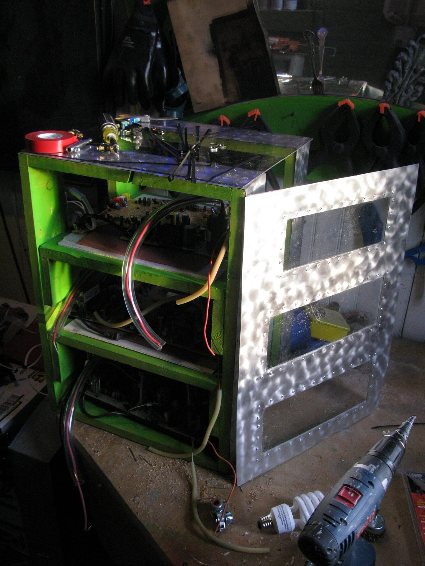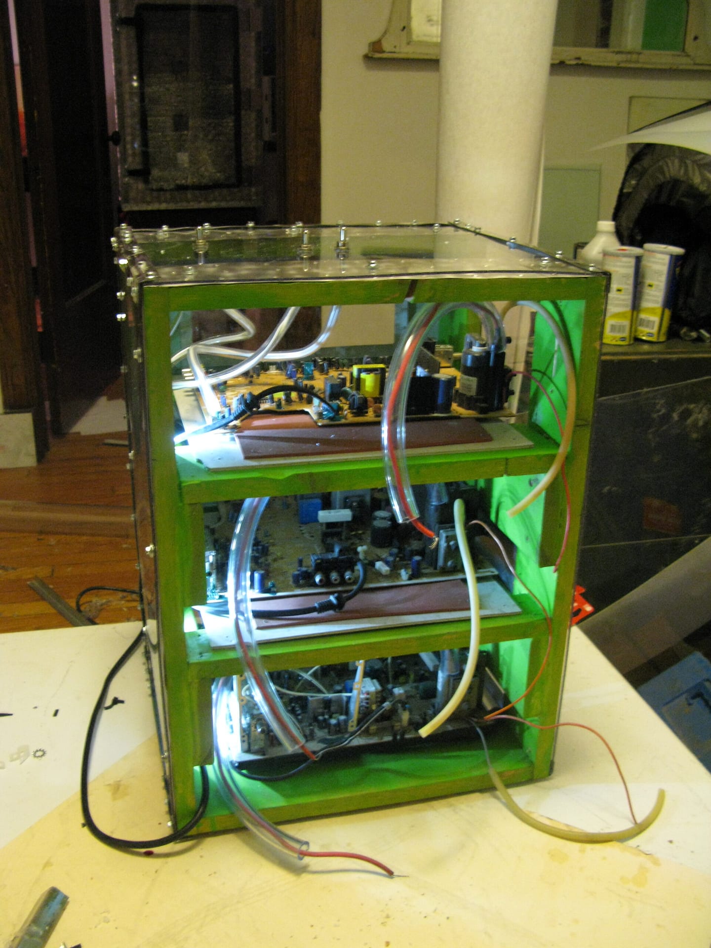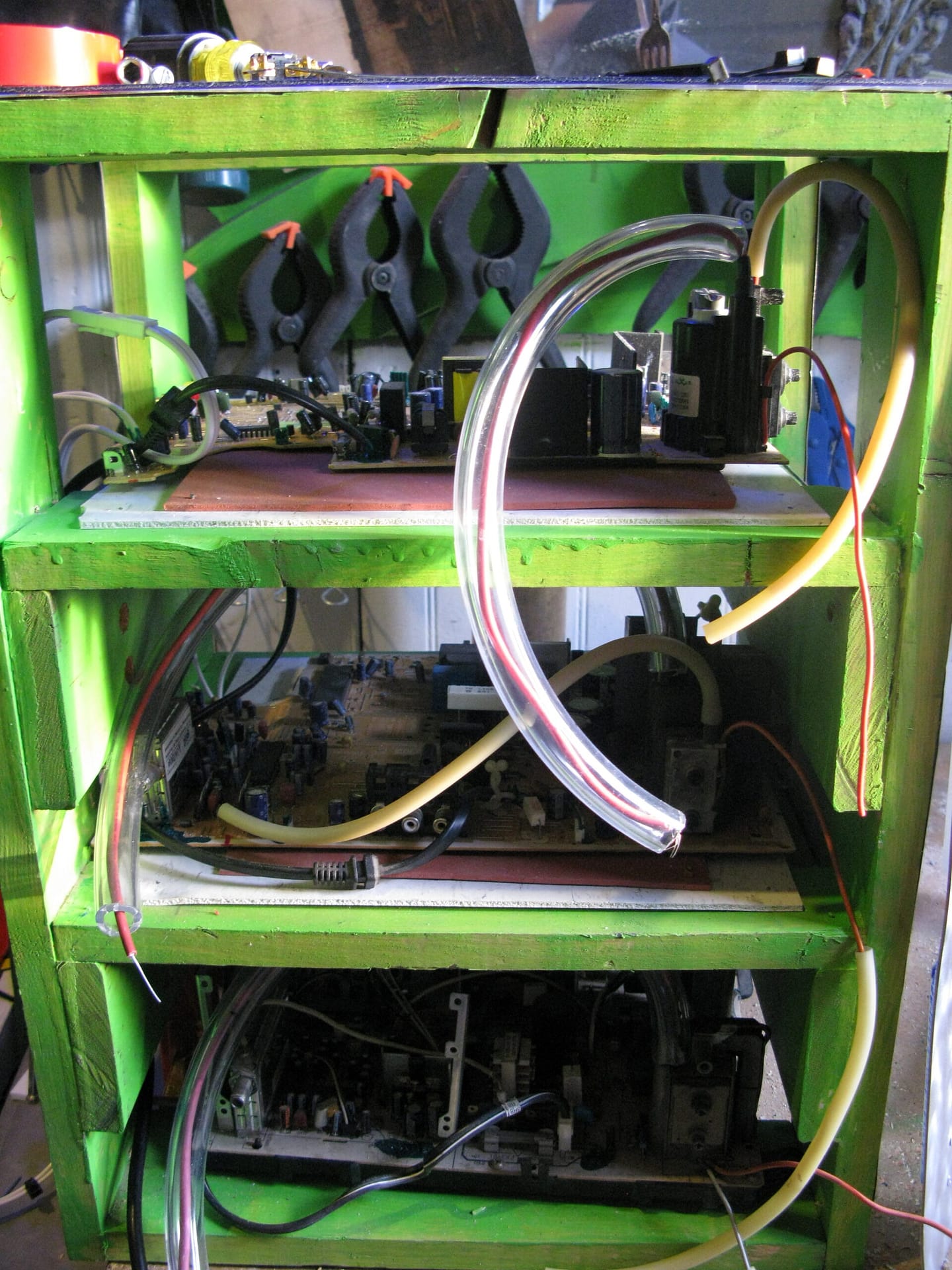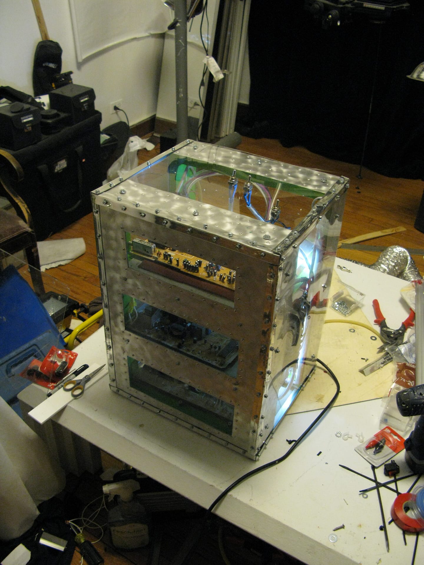 The next step in this project has been to expand the work on a larger scale. I engineered and built a 12 cubic foot vacuum particle accelerator with a power grid running at 300,000 V made from discarded television components, and a 10,000-watt stepped-up magnetron series. It is a photographic platform with which I have the freedom and flexibility to address a variety of natural mediums at the molecular level, probing the aesthetics of harmonics with the freedom to synthesize orchestration, and organic designs into new and larger contexts.