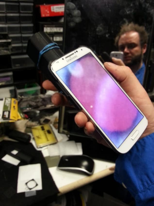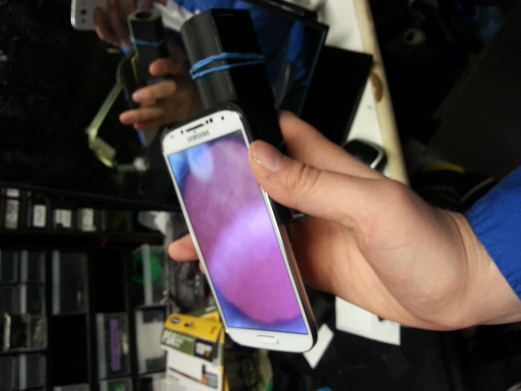 Traditionally, cell phone based fundus imaging is performed with the addition of lenses placed between the camera and subject, or as an attachment to other ophthalmic devices to achieve optimal magnification and off-axis illumination delivery.  However, this requires non trivial alignment and expert knowledge to operate.  The native optics of the cell phone offer the opportunity to image the retina for a novice user.  Micro waveguide technology delivers specular free imaging.  The hardware complexity is replaced with sophisticated software methods for non expert control and image reconstruction.