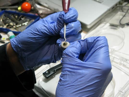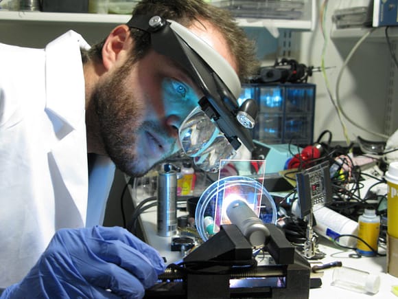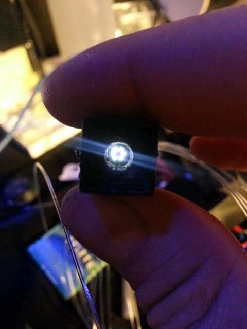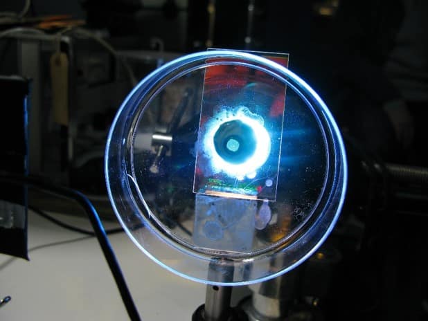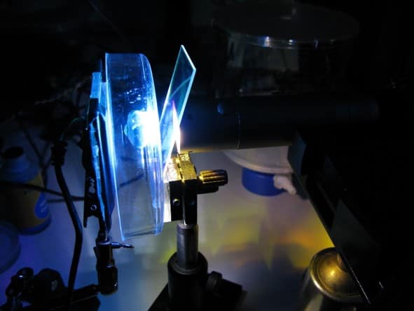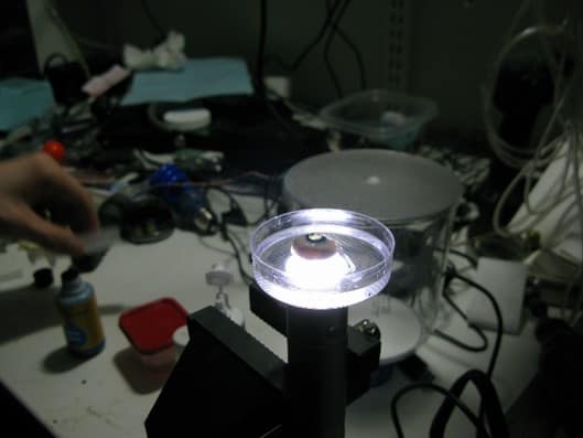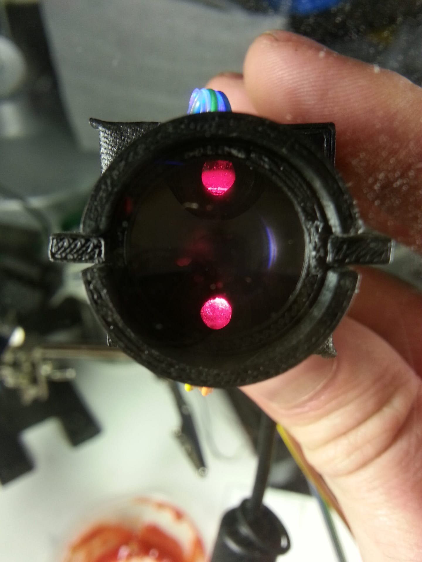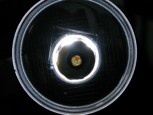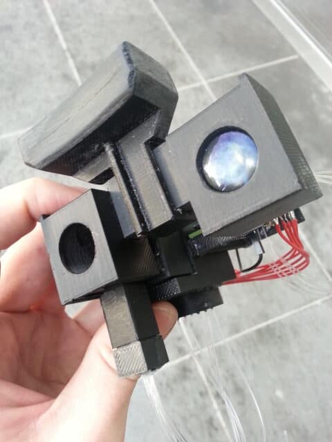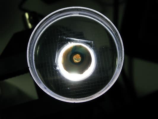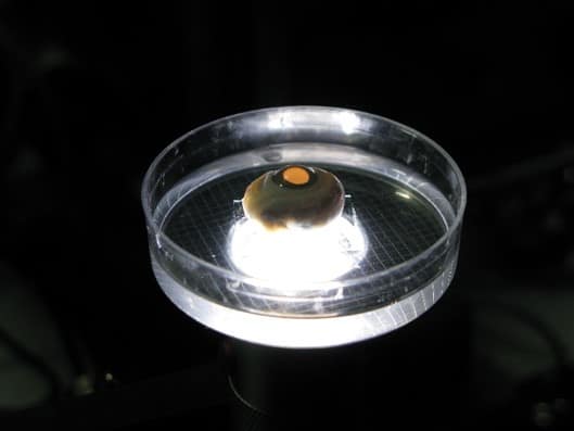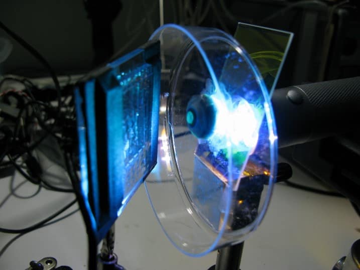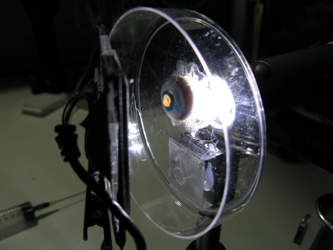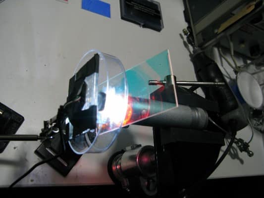 A cataract-affected eye scatters and refracts light before it reaches the retina, caused by a fogging or clouding of the lens. This system measures this deformation, or clouding, by allowing one to compare a good light path with a light path blocked by the cataract.