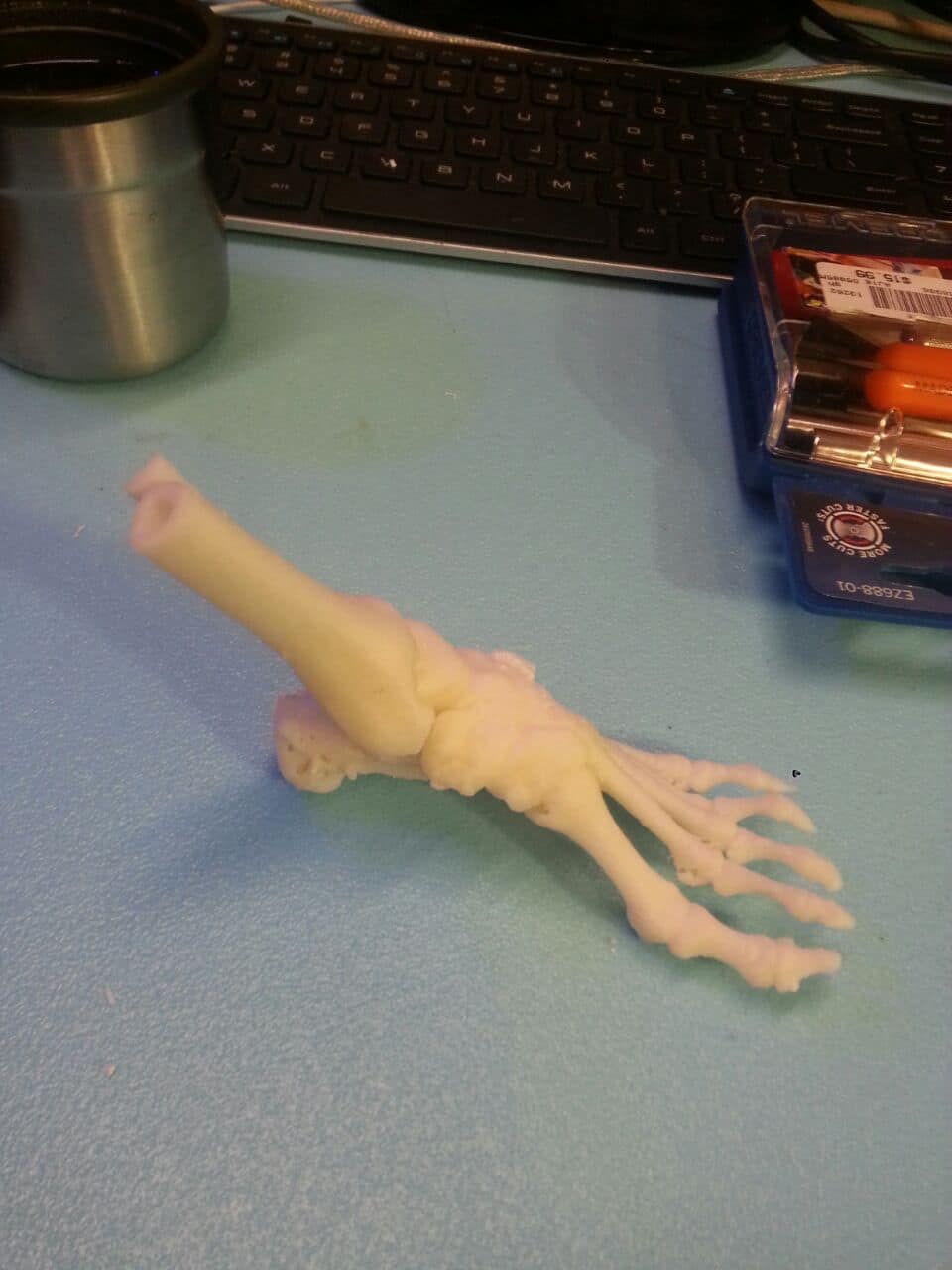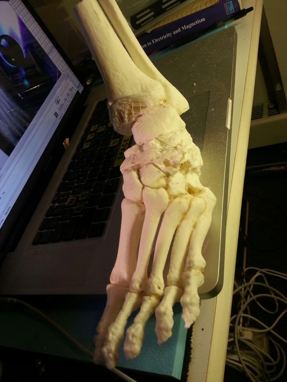The pain I had been experiencing for months following my reconstructive ankle surgery was not identifiable by my surgical team in the CT scans, so I printed my foot to show them. The 3D reconstruction allowed them to visualize the progressive collapse of my talar dome as a result of the surgery. This failed surgery eventually led to my below-knee amputation in 2017.